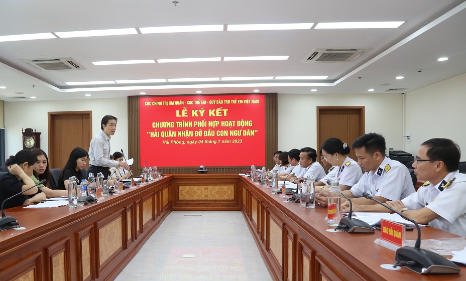Sáng 4/7, tại Hải Phòng, Cục Chính trị Hải quân và Cục Trẻ em, Quỹ Bảo trợ trẻ em (Bộ Lao động, Thương binh và Xã hội) tổ chức Lễ ký kết chương trình phối hợp hoạt động “Hải quân nhận đỡ đầu con ngư dân”.