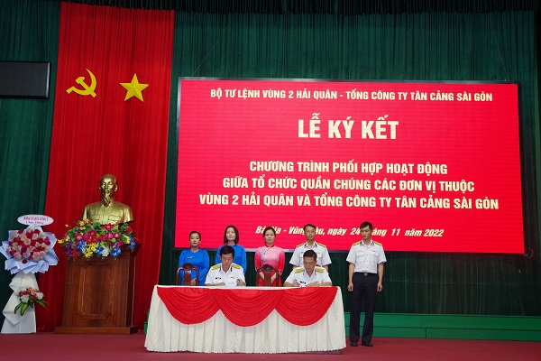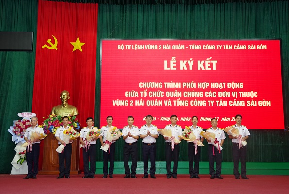Ngày 24/11, tại thành phố Vũng Tàu, tỉnh Bà Rịa-Vũng Tàu, Bộ Tư lệnh Vùng 2 Hải quân và Tổng công ty (TCT) Tân cảng Sài Gòn tổ chức Lễ ký kết chương trình phối hợp hoạt động giữa tổ chức quần chúng của hai đơn vị.