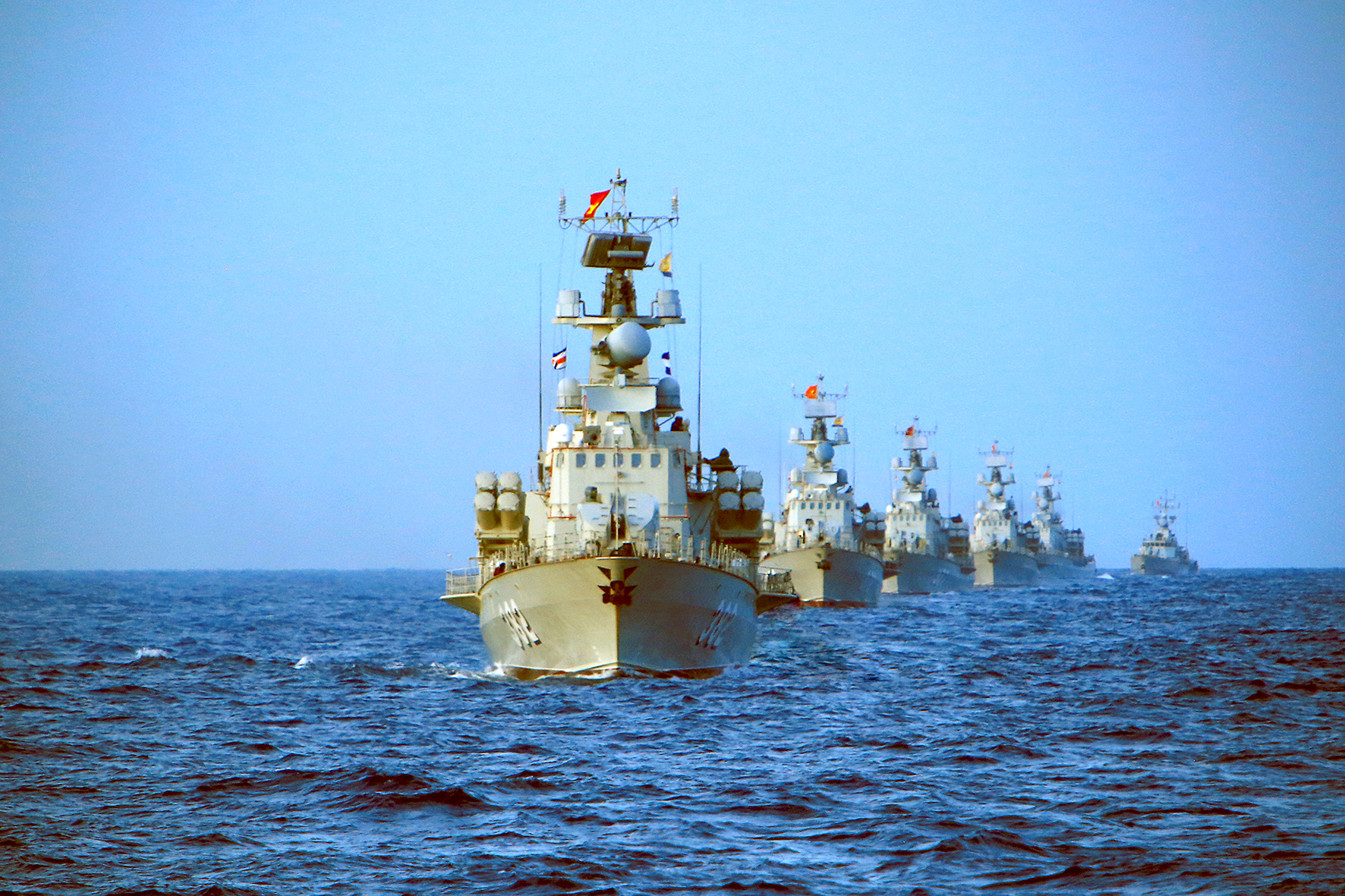 Các tàu thuộc Lữ đoàn 167 huấn luyện triển khai đội hình trên biển. Ảnh: Văn Đạt