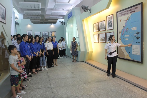 Qua giọng thuyết minh đầy truyền cảm, lần lượt từng hình ảnh, tư liệu, hiện vật trở nên sống động hơn, tái hiện lại dấu son lịch sử vẻ vang của Hải quân NDVN. Nhiều bạn trẻ xúc động khi tận mắt thấy hiện vật và nghe thông tin: “Đây chính là vỏ hòm đạn mà anh Đồng Quốc Bình đã tiếp đạn trên Tàu 134, góp phần bắn rơi máy bay Mỹ trong trận chiến đấu ngày 5-8 tại Bãi Cháy, Quảng Ninh. Trong lúc chiến đấu, anh đã bị thương 3 lần nhưng vẫn cố nén cơn đau, bình tĩnh tiếp đạn cho đồng đội. Do vết thương quá nặng, anh đã anh dũng hy sinh…”