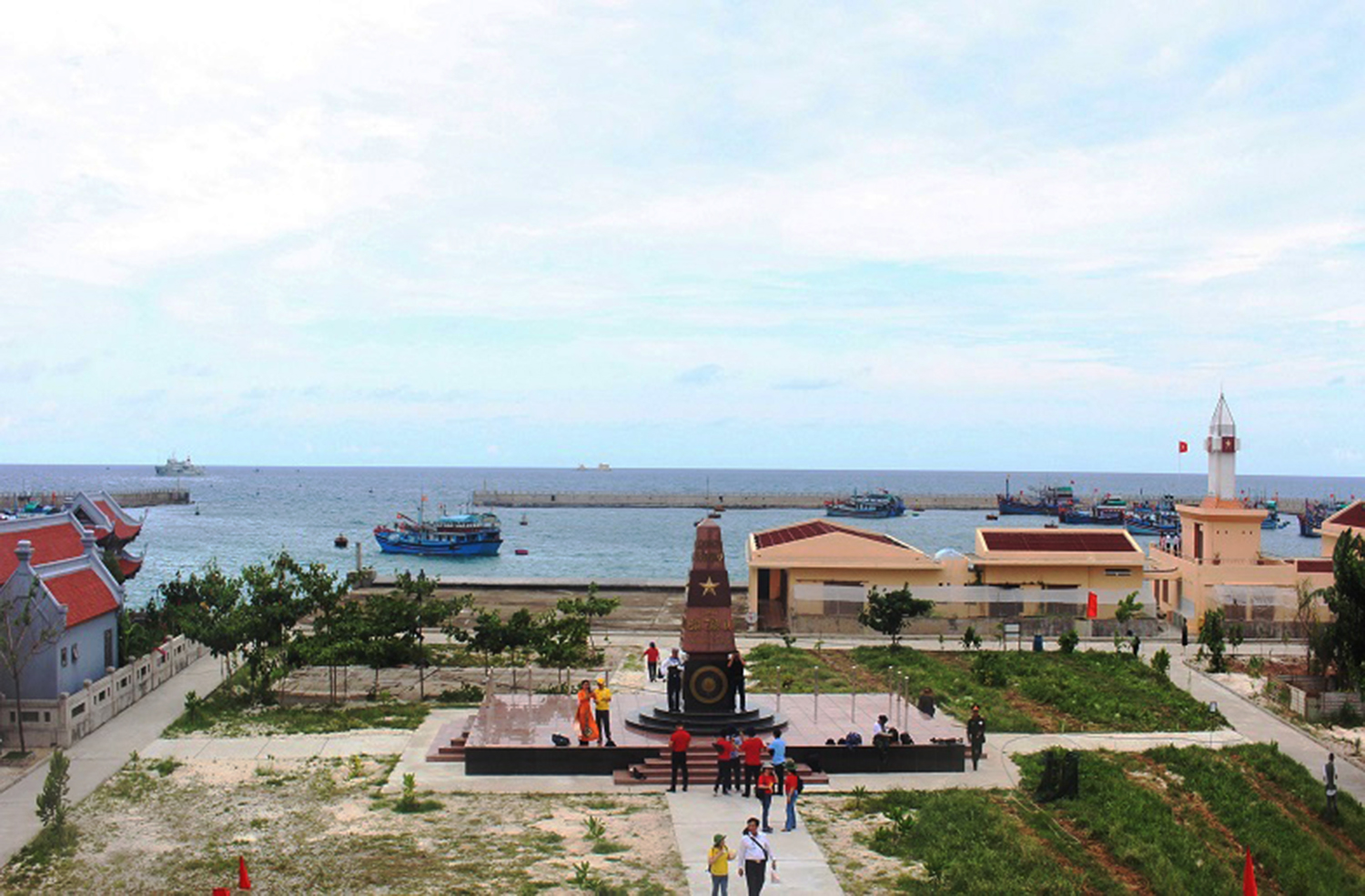 Từ xa, đảo hiện lên xanh tươi như một khu rừng thu nhỏ trên mặt biển mênh mông. Trên nền san hô trắng xóa nhưng những cây bàng quả vuông, cây tra, cây phong ba, phi lao, dừa… xanh mướt đang hiên ngang sức sống. Xen giữa những tàng cây xanh là mái ngói đỏ tươi của các công trình dân sinh như: Chùa, trường học, nhà đại đoàn kết các dân tộc Việt Nam, Trung tâm Dịch vụ hậu cần nghề cá… Những chiến sĩ Hải quân trong trang phục dã chiến đang hối hả đưa, đón các đại biểu từ tàu vào thăm đảo. Các cháu nhỏ nô đùa, chạy tung tăng khắp nơi vì phấn khởi trong ngày đảo có khách.