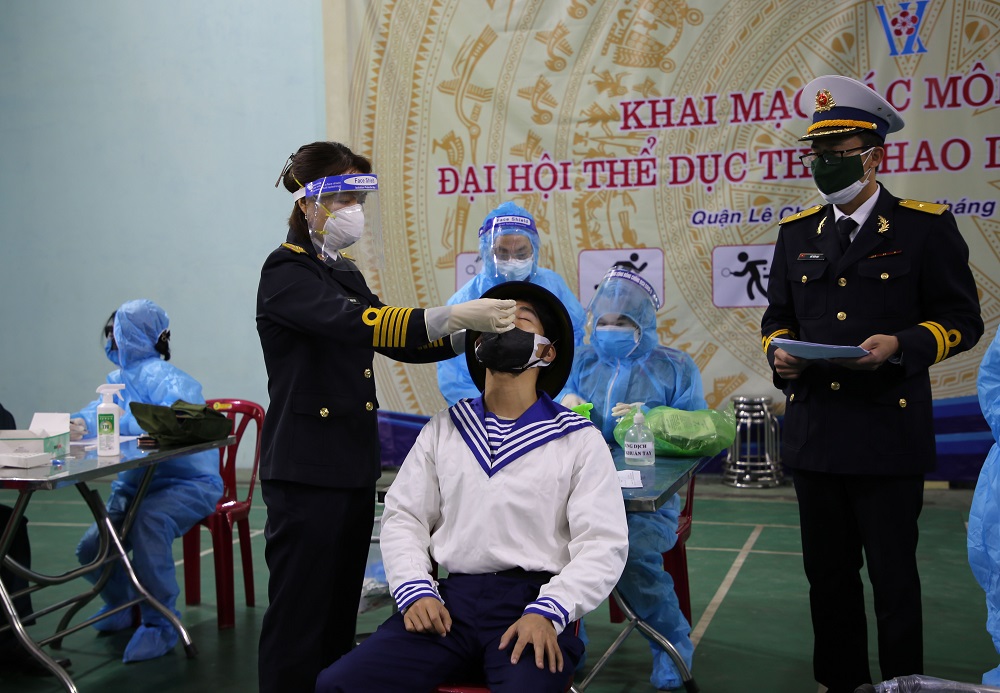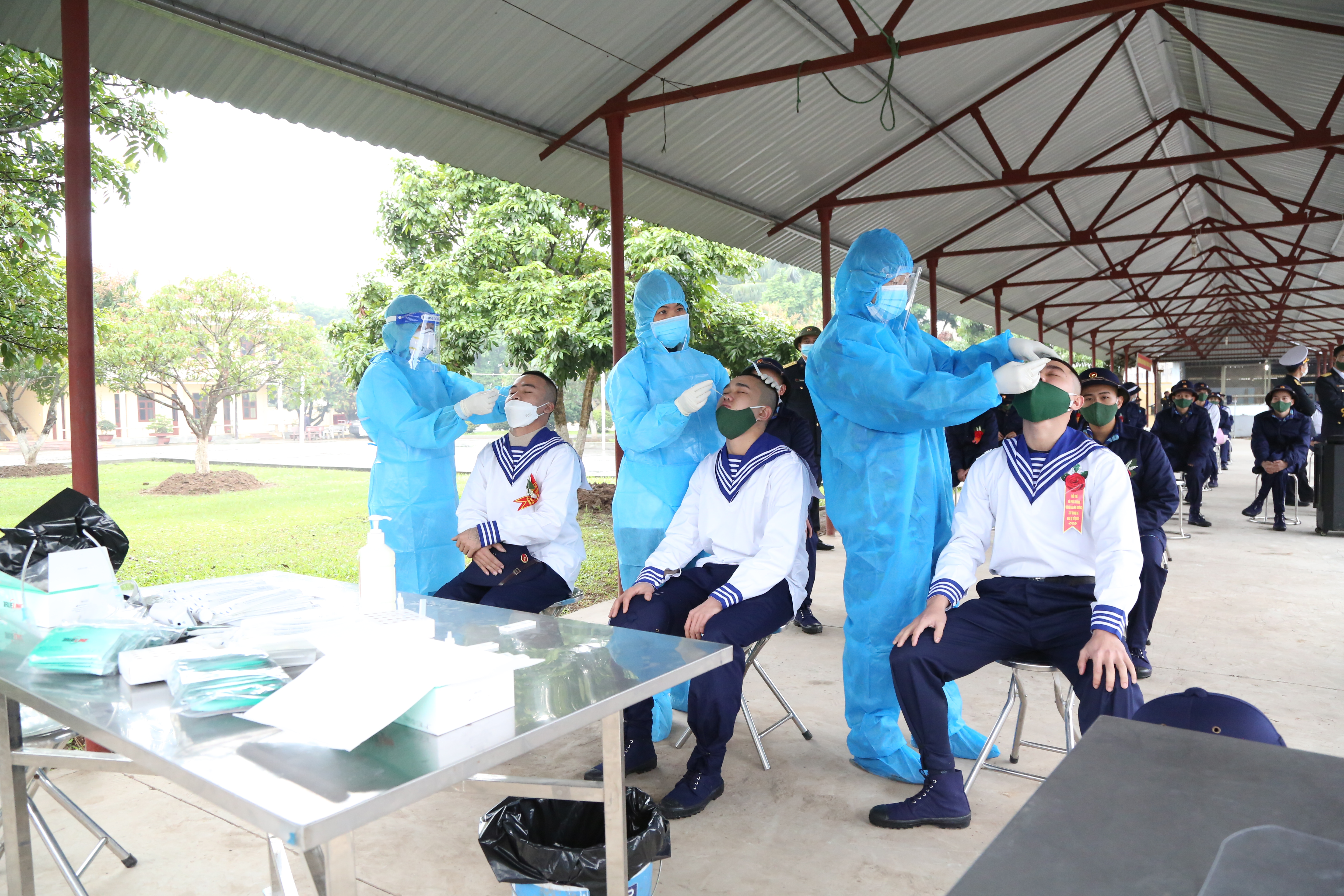 100% chiến sĩ mới được phát khẩu trang, đo thân nhiệt và xét nghiệm SARS-CoV-2 trước khi về đơn vị.