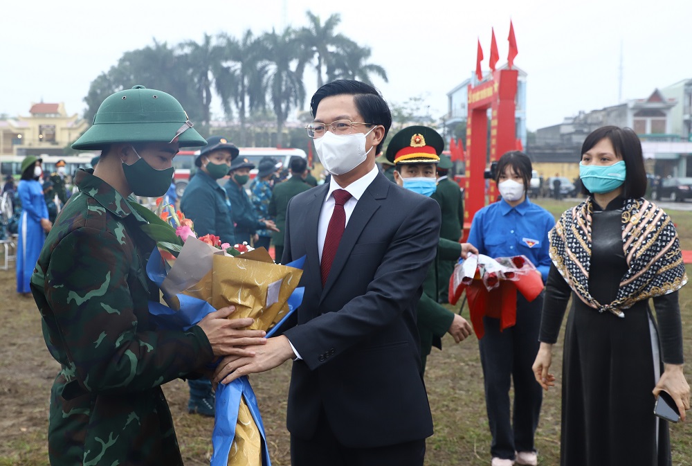 Chủ tịch UBND thành phố Nguyễn Văn Tùng cùng các đại biểu đã tặng hoa chúc mừng các chiến sĩ mới, đơn vị nhận quân và động viên các chiến sĩ mới cố gắng học tập, rèn luyện, hoàn thành tốt nhiệm vụ Tổ quốc giao.