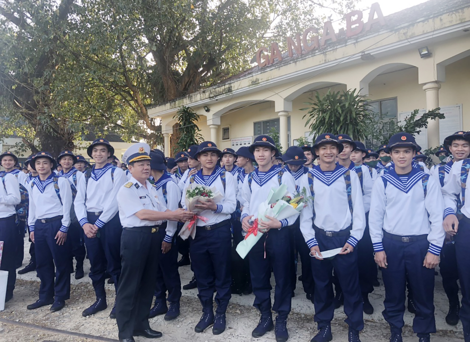 Tại buổi lễ, đại diện Tiểu đoàn 158, Vùng 1 Hải quân đã tiếp nhận 35 thanh niên của địa phương nhập ngũ vào đơn vị.