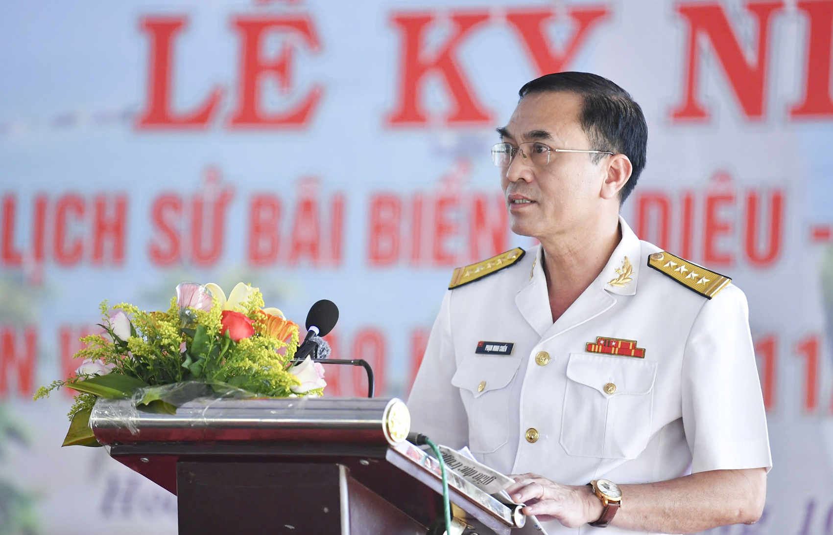 Đại tá Phạm Minh Chiến phát biểu tại buổi lễ