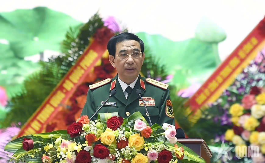 Đại tướng Phan Văn Giang trình bày diễn văn tại buổi lễ. Ảnh: Báo QĐND