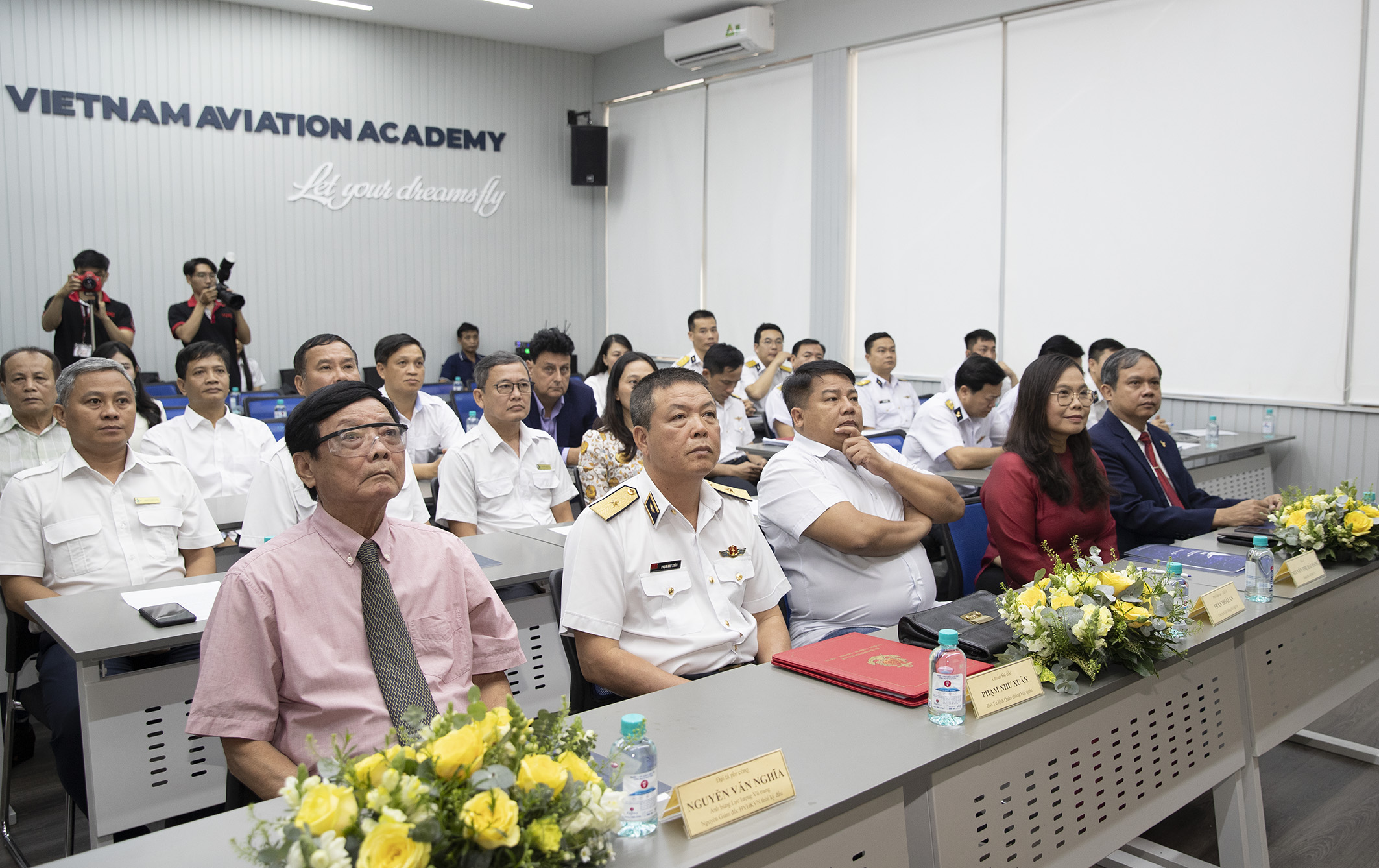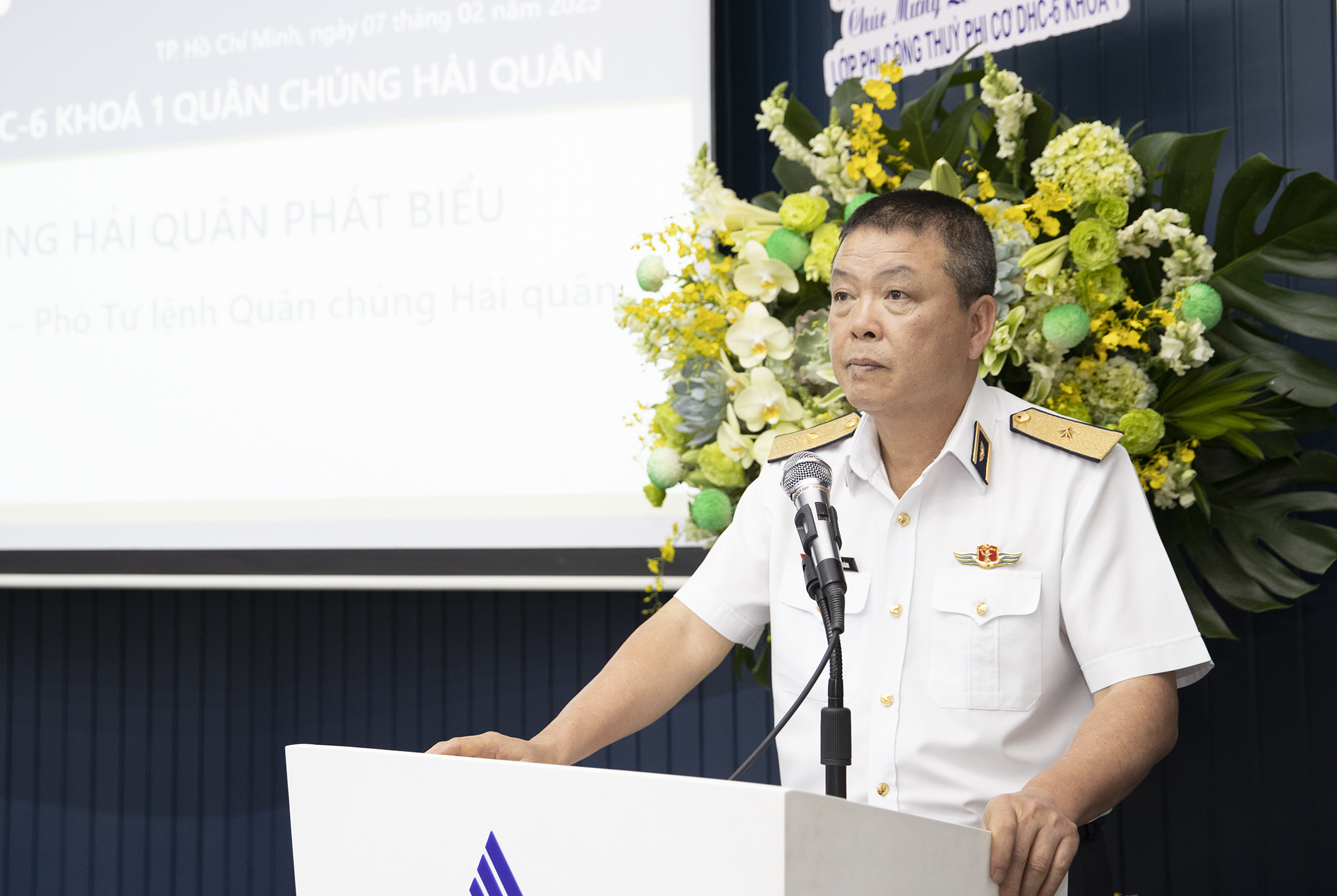 Tham dự buổi lễ có các đồng chí: Chuẩn Đô đốc Phạm Như Xuân, Phó Tư lệnh Quân chủng Hải quân; PGS, TS Trần Hoài An, Chủ tịch Hội đồng Học viện Hàng không Việt Nam; TS Nguyễn Thị Hải Hằng, Giám đốc Học viện Hàng không Việt Nam; lãnh đạo các cơ quan chức năng Quân chủng Hải quân và Học viện Hàng không Việt Nam cùng các học viên tốt nghiệp phi công thuỷ phi cơ DHC-6 khóa 1.