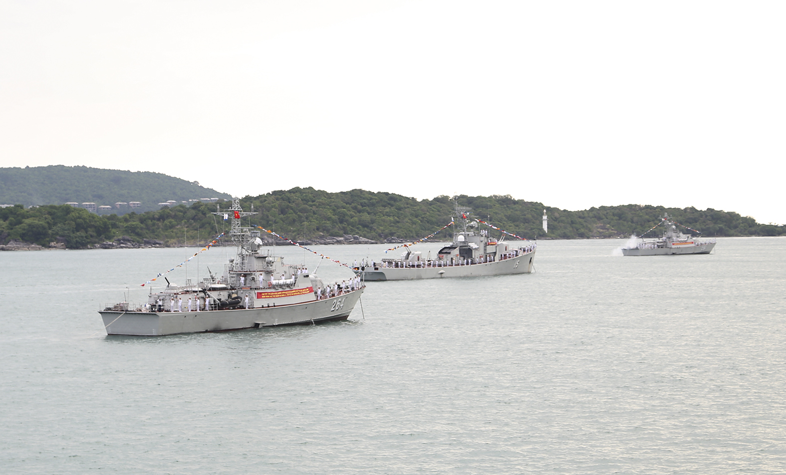 Đội hình tàu Hải quân tham dự Lễ tưởng niệm trên biển