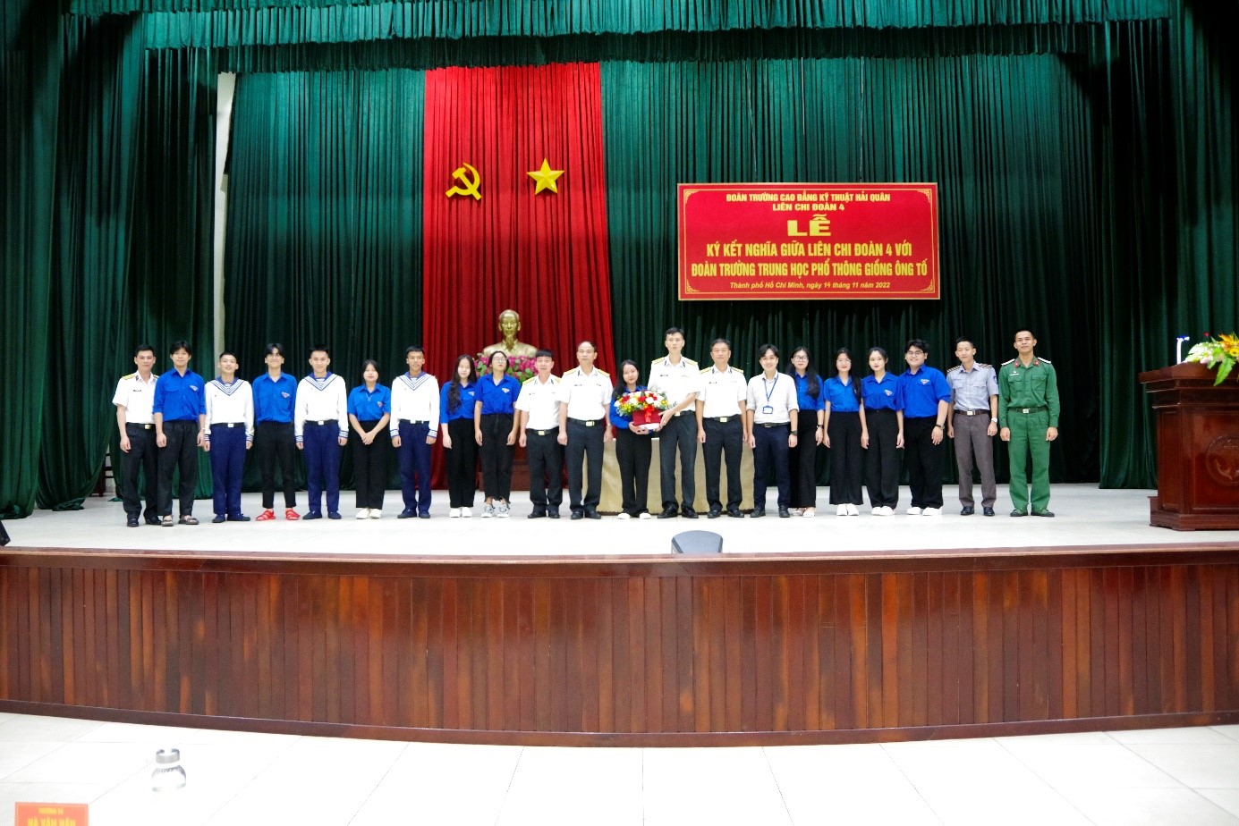 Tối 14/11, tại TP. Hồ Chí Minh, Liên chi đoàn 4, Trường Cao đẳng kỹ thuật Hải quân và Đoàn trường THPT Giồng Ông Tố tổ chức lễ ký kết nghĩa. Đến dự và chỉ đạo có Thượng tá Hà Văn Hậu, Phó Chính ủy Trường Cao đẳng kỹ thuật Hải quân và đồng chí Nguyễn Văn Hiệp, Hiệu trưởng Trường THPT Giồng Ông Tố.