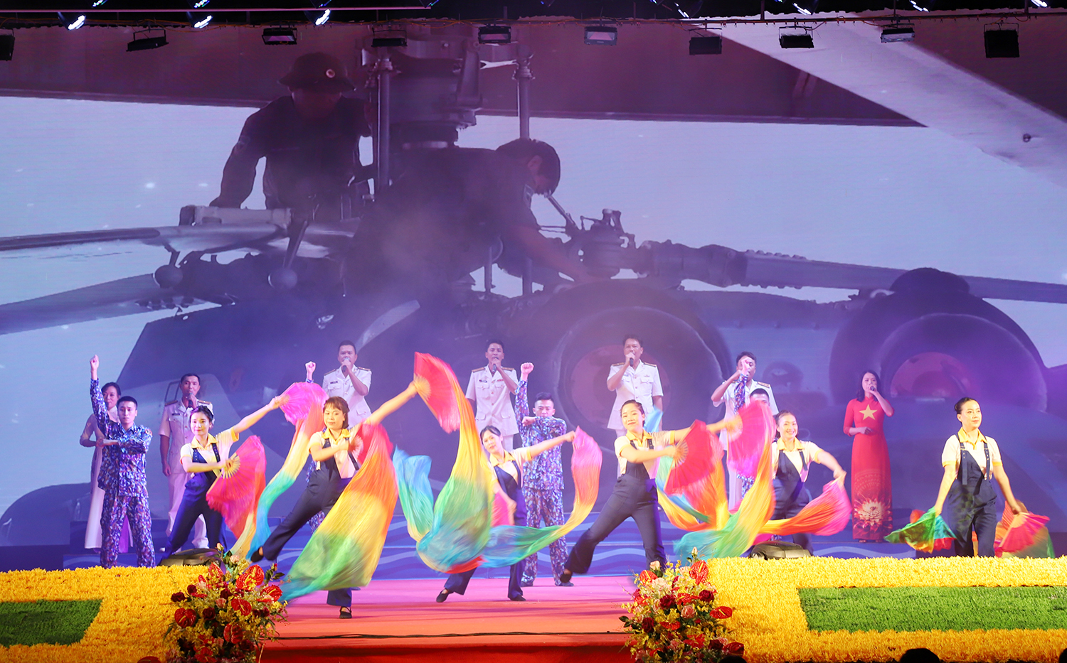 Chương trình có 12 tiết mục hát múa được dàn dựng công phu, ca ngợi Đảng quang vinh, Bác Hồ vĩ đại, tình yêu quê hương đất nước, Quân đội, Quân chủng Hải quân anh hùng.