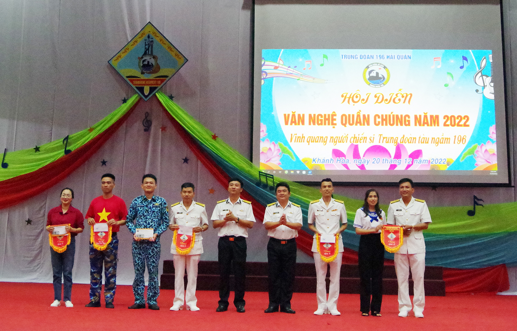 Tối 20/12, tại TP. Cam Ranh, tỉnh Khánh Hoà, Trung đoàn 196 Hải quân tổ chức liên hoan văn nghệ quần chúng với chủ đề: "Vinh quang người chiến sĩ Trung đoàn Tàu ngầm 196".