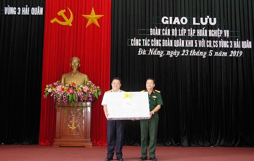 Chiều 23-5, tại Đà Nẵng, đoàn cán bộ lớp tập huấn nghiệp vụ công tác công đoàn Quân khu 5 đã đến thăm, giao lưu với cán bộ, chiến sĩ Vùng 3 Hải quân. Đoàn do Đại tá Trương Thiên Tô, Chủ nhiệm chính trị Quân khu 5 làm trưởng đoàn cùng 60 cán bộ làm công tác công đoàn đến từ các đơn vị, doanh nghiệp trong lực lượng vũ trang Quân khu 5.