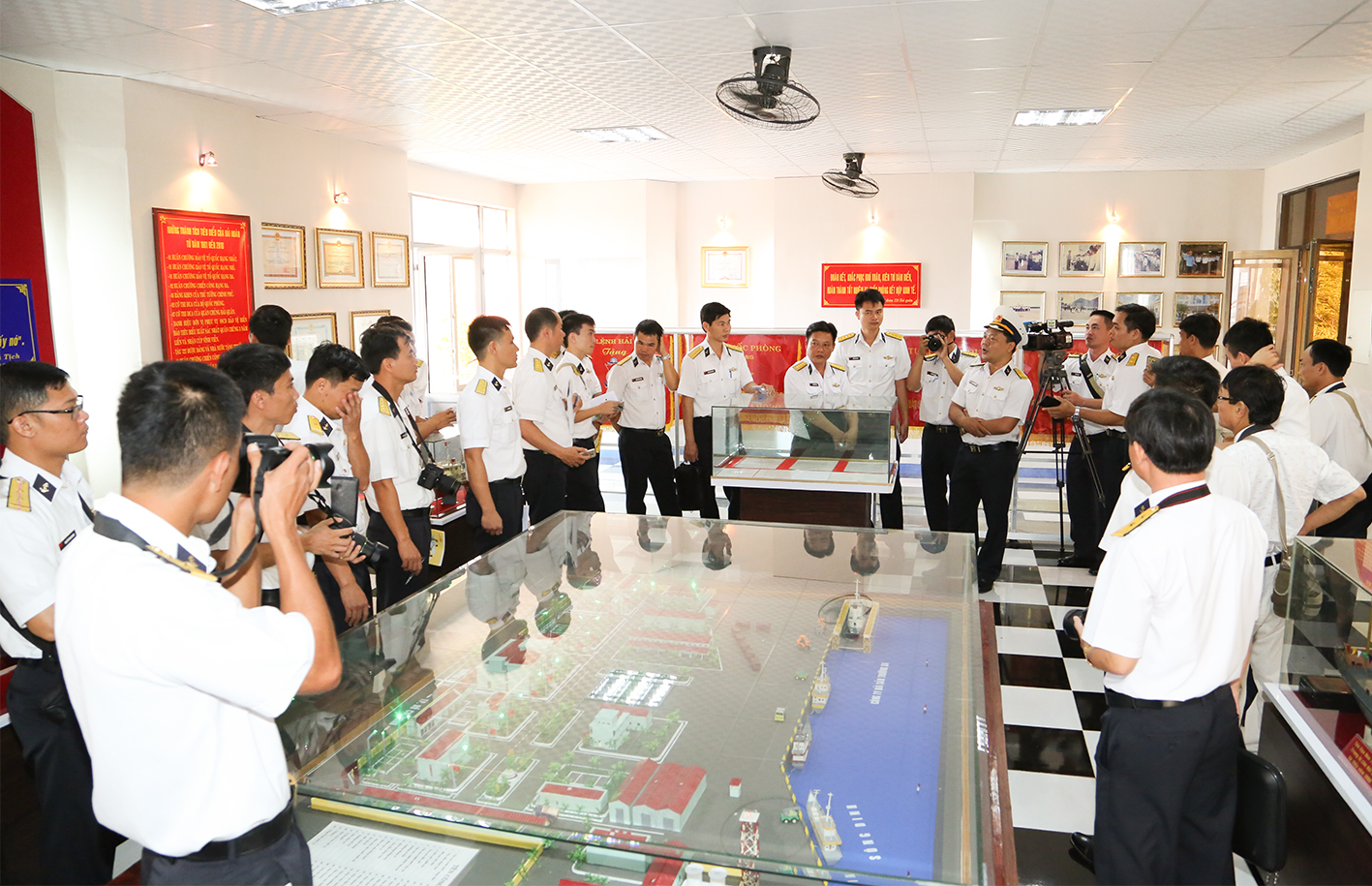 Thông tin viên nghe giới thiệu về truyền thống Hải đoàn