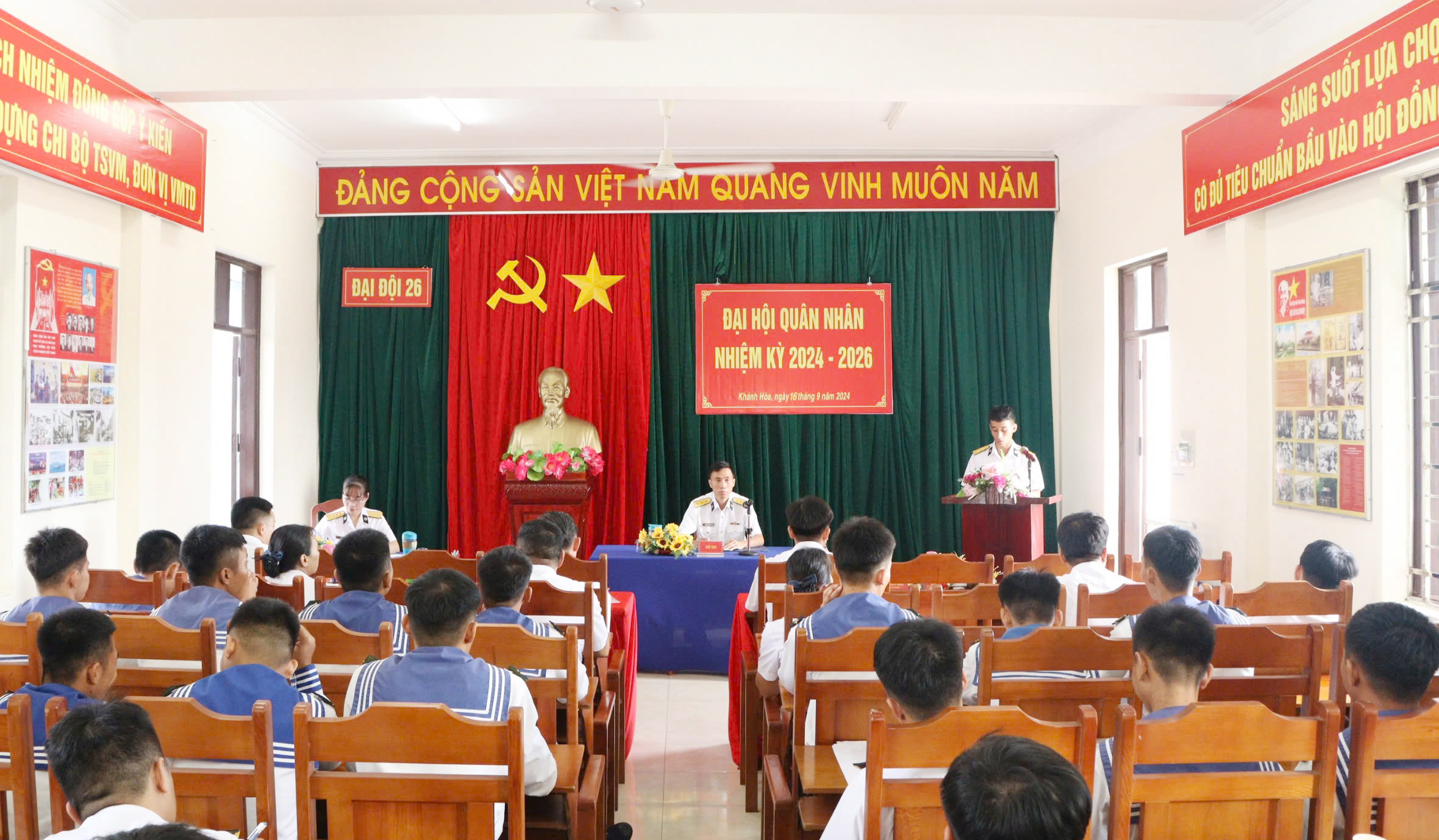 Ngày 16/9, tại huyện Cam Lâm, tỉnh Khánh Hòa, Đại đội 26, Phòng Tham mưu, Lữ đoàn 101, Vùng 4 Hải quân tổ chức Đại hội quân nhân nhiệm kỳ 2024-2026. Dự và chỉ đạo có Thượng tá Nguyễn Văn Tạo, Phó Chính ủy Lữ đoàn.
