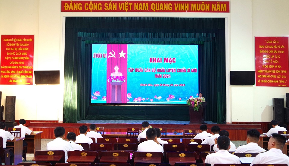 Sáng 8/1, tại huyện Cam Lâm, tỉnh Khánh Hòa, Lữ đoàn 101, Vùng 4 Hải quân tổ chức khai mạc Lớp tập huấn cán bộ huấn luyện chiến sĩ mới (CSM) năm 2024. Dự và chỉ đạo có Đại tá Bùi Đình Dương, Phó Lữ đoàn trưởng.