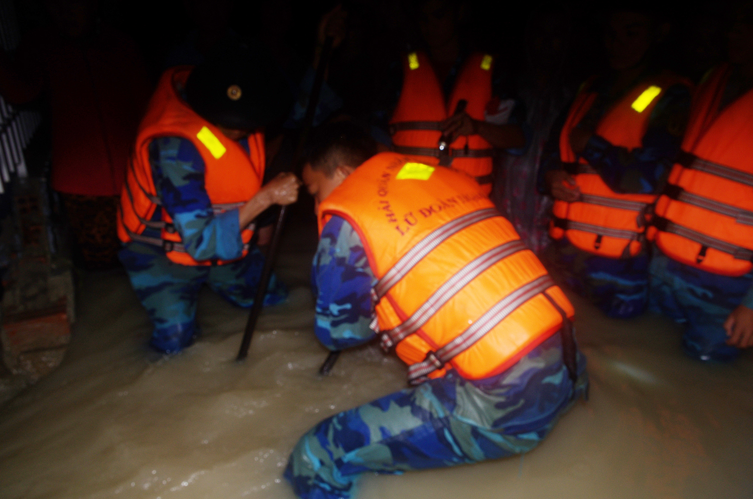 Bộ đội Lữ đoàn 101 giúp dân khơi thông dòng chảy trong đêm