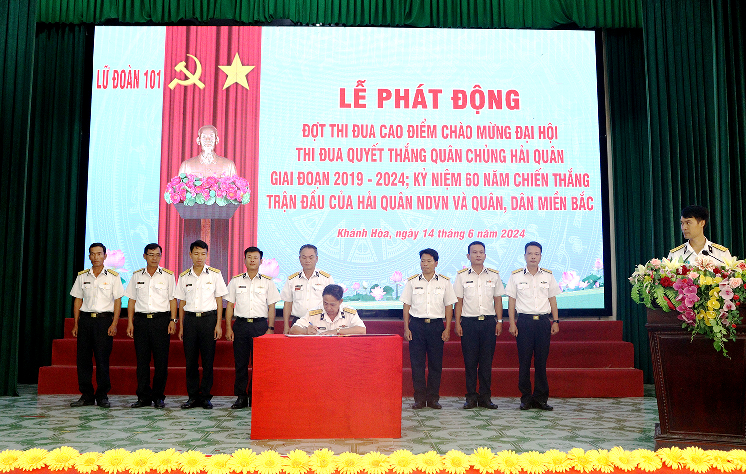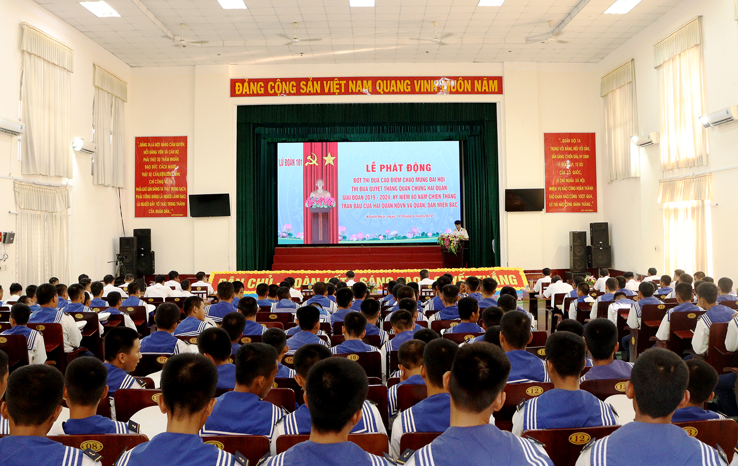 Chiều 14/6, tại huyện Cam Lâm, tỉnh Khánh Hòa, Lữ đoàn 101, Vùng 4 Hải quân tổ chức Lễ phát động thi đua cao điểm chào mừng Đại hội thi đua Quyết thắng Quân chủng Hải quân giai đoạn 2019-2024; kỷ niệm 60 năm Chiến thắng trận đầu của Hải quân Nhân dân Việt Nam và quân, dân miền Bắc với chủ đề “60 ngày đêm đoàn kết, sáng tạo, mẫu mực, kỷ cương, quyết thắng”.
