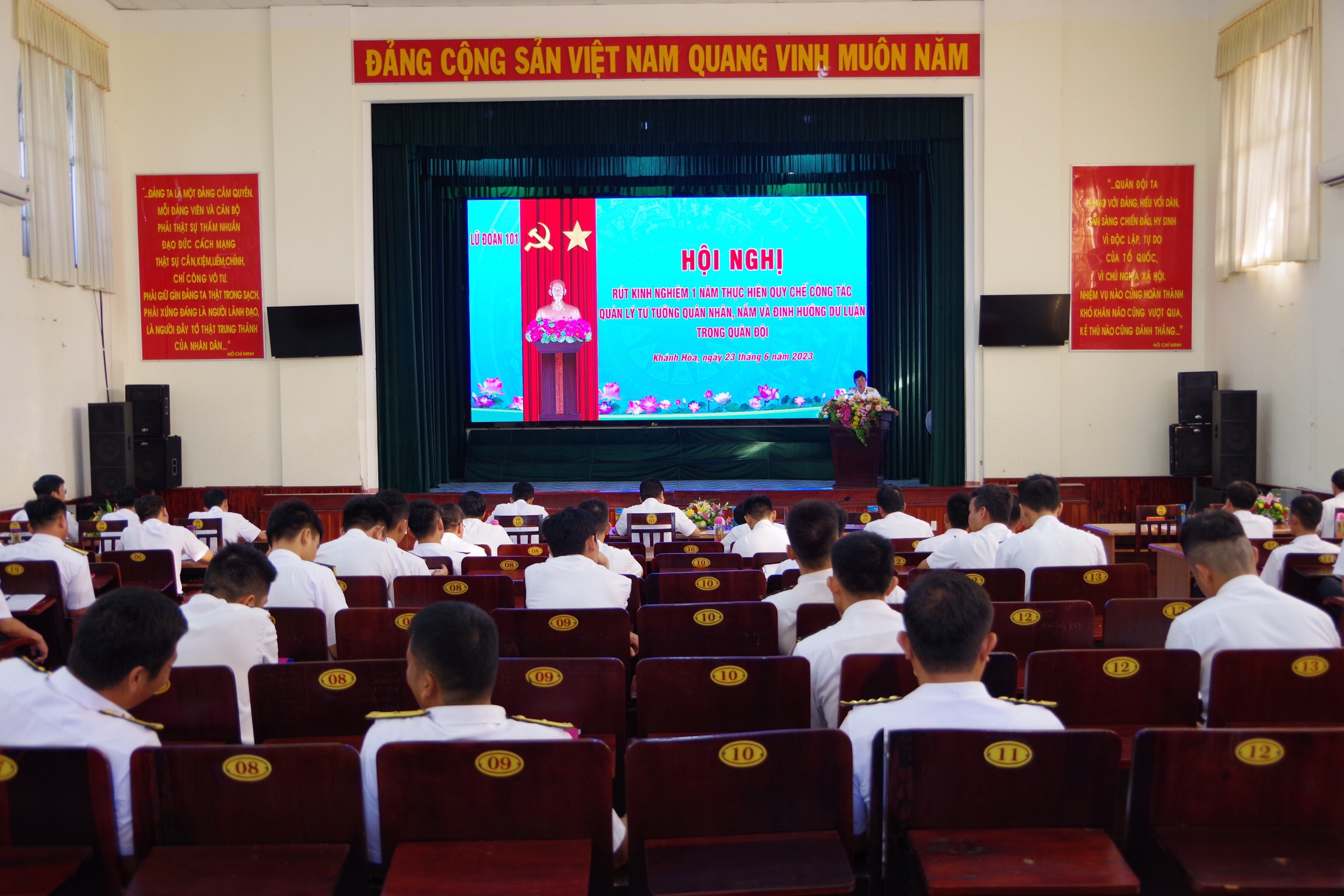Sáng 23/6, tại huyện Cam Lâm, tỉnh Khánh Hòa, Lữ đoàn 101, Vùng 4 Hải quân tổ chức Hội nghị rút kinh nghiệm 1 năm thực hiện Quy chế công tác quản lý tư tưởng quân nhân, nắm và định hướng dư luận trong quân đội (Quy chế 775). Đại tá Phạm Duy Hướng, Chính uỷ Lữ đoàn chủ trì.