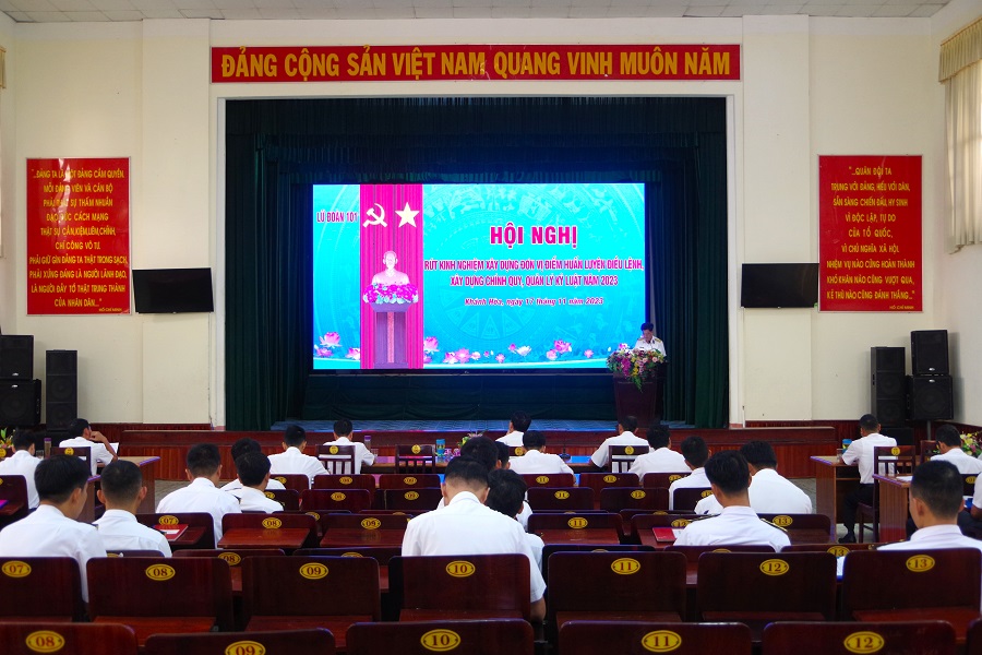 Chiều 17/11, tại huyện Cam Lâm, tỉnh Khánh Hòa, Lữ đoàn 101, Vùng 4 Hải quân đã tổ chức Hội nghị rút kinh nghiệm xây dựng đơn vị điểm về huấn luyện điều lệnh, xây dựng chính quy, quản lý kỷ luật năm 2023. Đại tá Bùi Quang Thuyên, Lữ đoàn trưởng chủ trì.