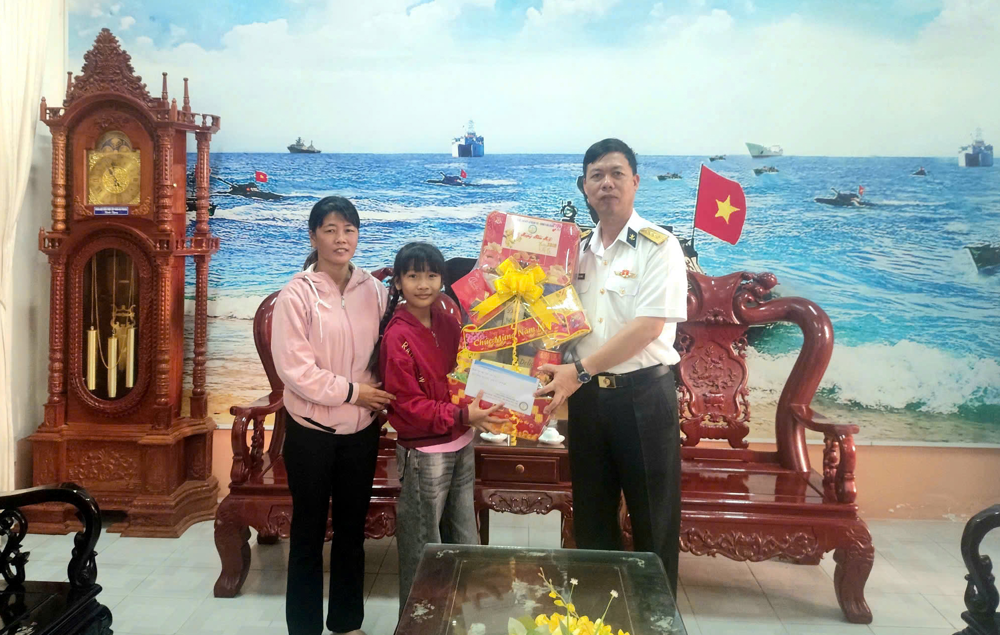 Nhân dịp chuẩn bị đón Tết Nguyên đán Ất Tỵ 2025, Lữ đoàn đã trao tặng cháu Mỹ quà tết và 2 triệu đồng tiền mặt.