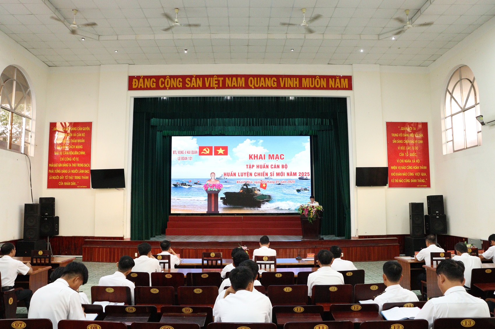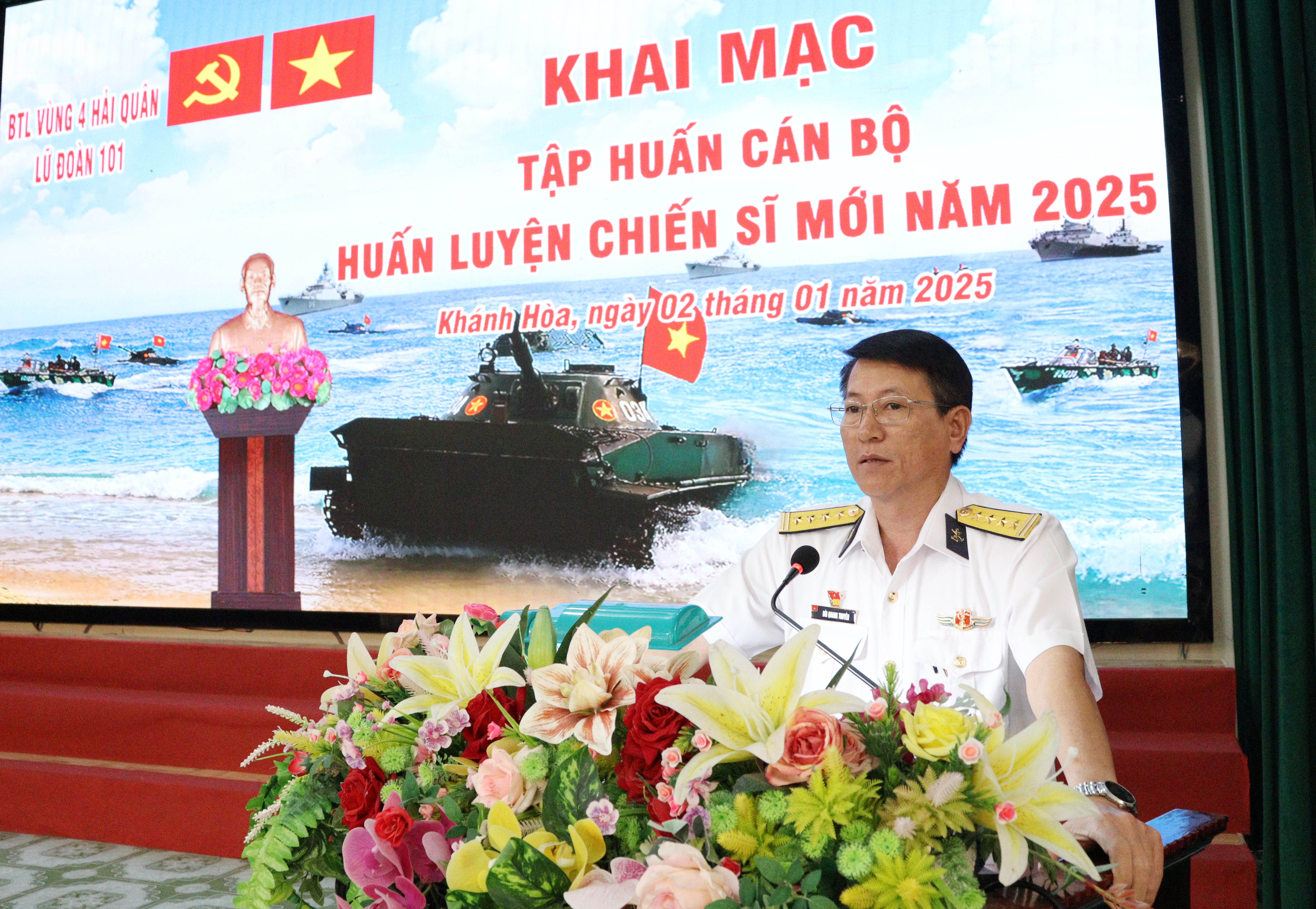 Ngày 2/1, tại xã Cam Thành Bắc, huyện Cam Lâm, tỉnh Khánh Hòa, Lữ đoàn 101, Vùng 4 Hải quân tổ chức khai mạc lớp tập huấn cán bộ huấn luyện chiến sĩ mới năm 2025. Đại tá Bùi Quang Thuyên, Lữ đoàn trưởng dự, chỉ đạo.