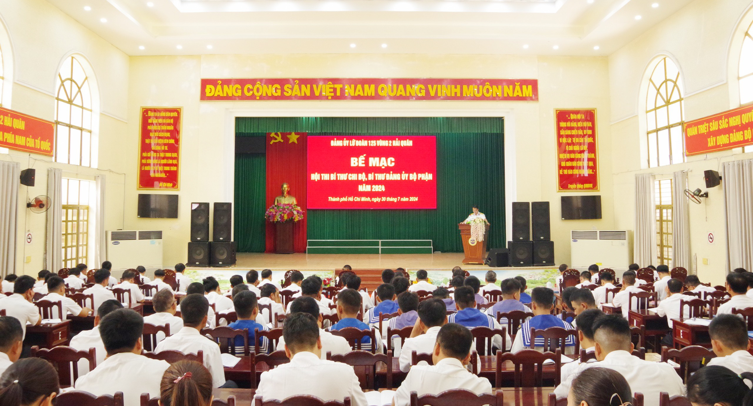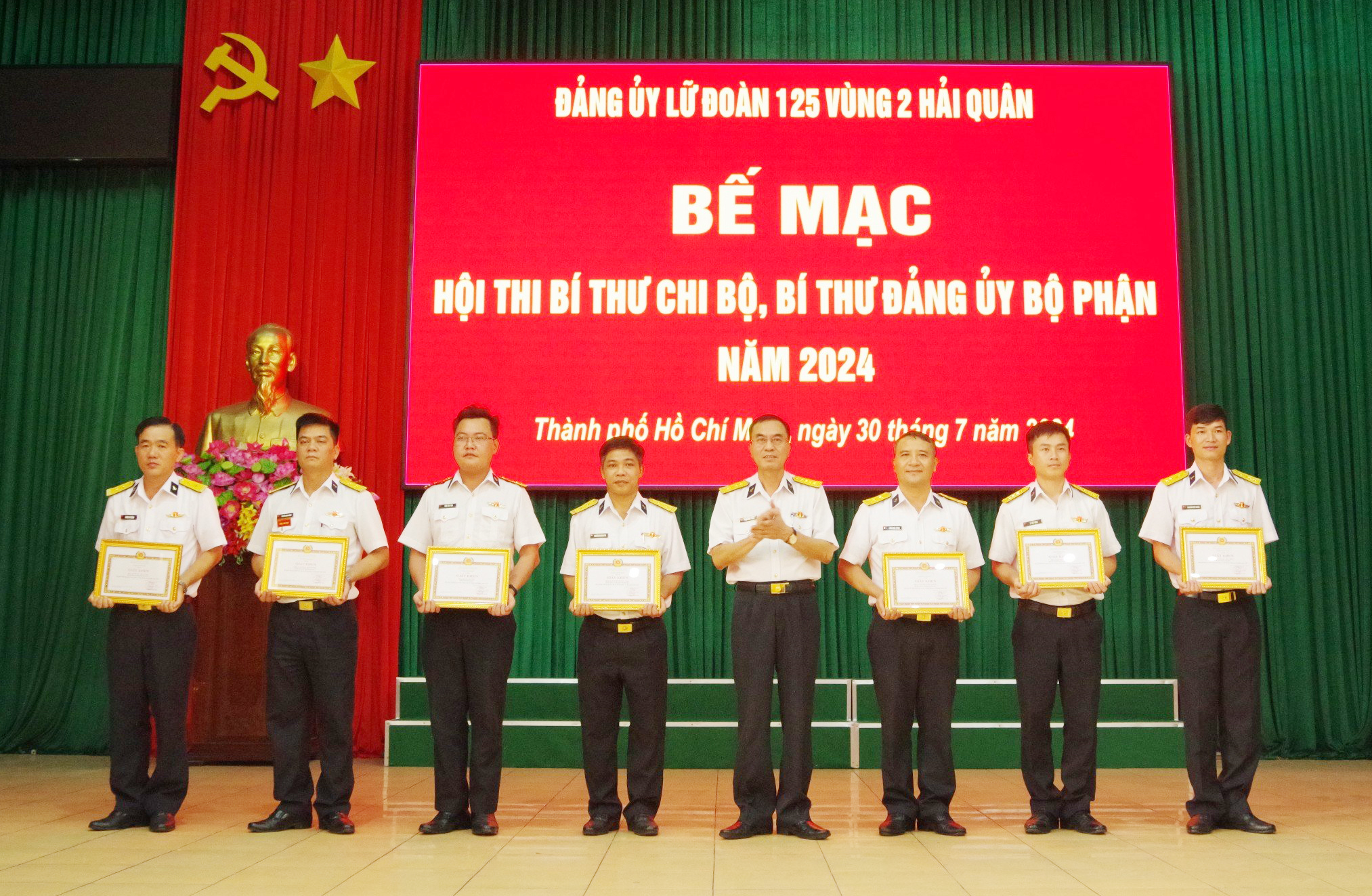 Ngày 30/7, tại thành phố Hồ Chí Minh, Lữ đoàn 125, Vùng 2 Hải quân tổ chức bế mạc Hội thi bí thư chi bộ, bí thư đảng ủy bộ phận giỏi năm 2024. Đại tá Phạm Minh Chiến, Bí thư Đảng ủy, Chính ủy Lữ đoàn dự và chỉ đạo.