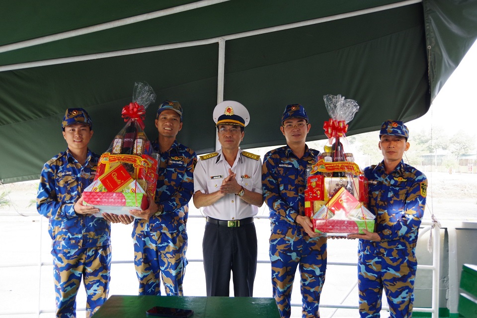 Đại tá Phạm Minh Chiến, Bí thư Đảng ủy, Chính ủy Lữ đoàn 125 đã đến thăm, kiểm tra, tặng quà, chúc tết các tàu tại cảng.