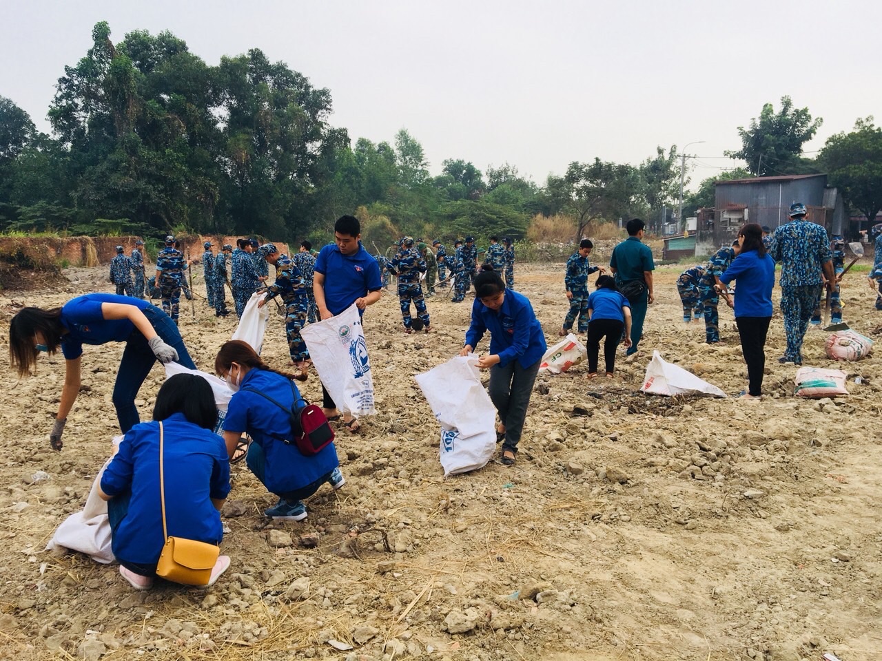 Hơn 100 cán bộ, đoàn viên thanh niên đã thu dọn rác thải, tổ chức san lấp khu đất hơn 1.000m2 ở đầu đường số 13, khu phố 1, phường Cát Lái. Khu đất này trước khi cải tạo có nhiều cây cối, cỏ dại mọc um tùm, đầy rác thải các loại, mất vệ sinh, ô nhiễm môi trường.