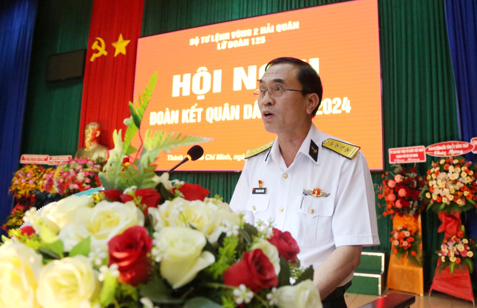 Chiều 20/12, tại TP. Hồ Chí Minh, Lữ đoàn 125, Vùng 2 Hải quân đã tổ chức Hội nghị đoàn kết quân dân năm 2024. Tham dự hội nghị có Chuẩn Đô đốc Lê Bá Quân, Tư lệnh Vùng 2; Đại tá Trần Mạnh Chiến, Chính ủy Vùng 2; đồng chí Hoàng Tùng, Phó Bí thư, Chủ tịch UBND TP Thủ Đức (TP. Hồ Chí Minh).