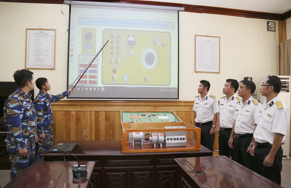 Tàu 513 giới thiệu về mô hình mô phỏng 3D điều khiển bắn từ bàn điều khiển chính trên tàu
