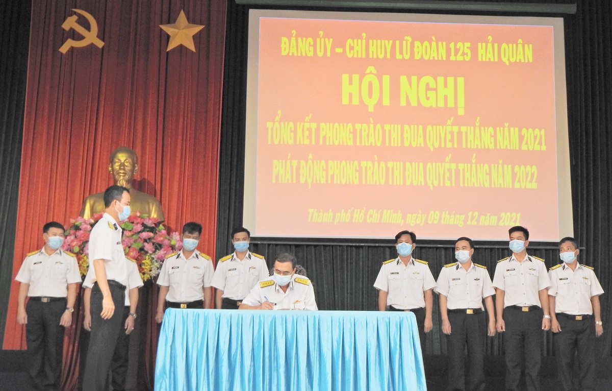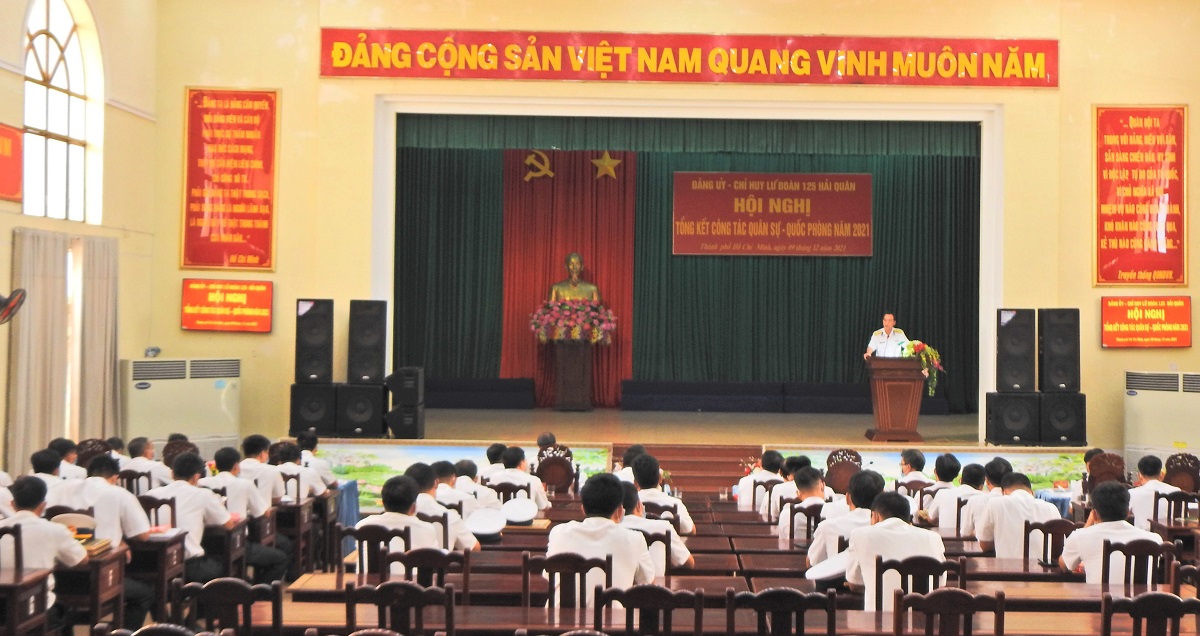Sáng 9/12, tại TP. Hồ Chí Minh, Lữ đoàn 125, Vùng 2 Hải quân tổ chức Hội nghị tổng kết công tác quân sự-quốc phòng năm 2021, triển khai nhiệm vụ năm 2022. Đại tá Võ Đình Chiến, Lữ đoàn trưởng chủ trì.