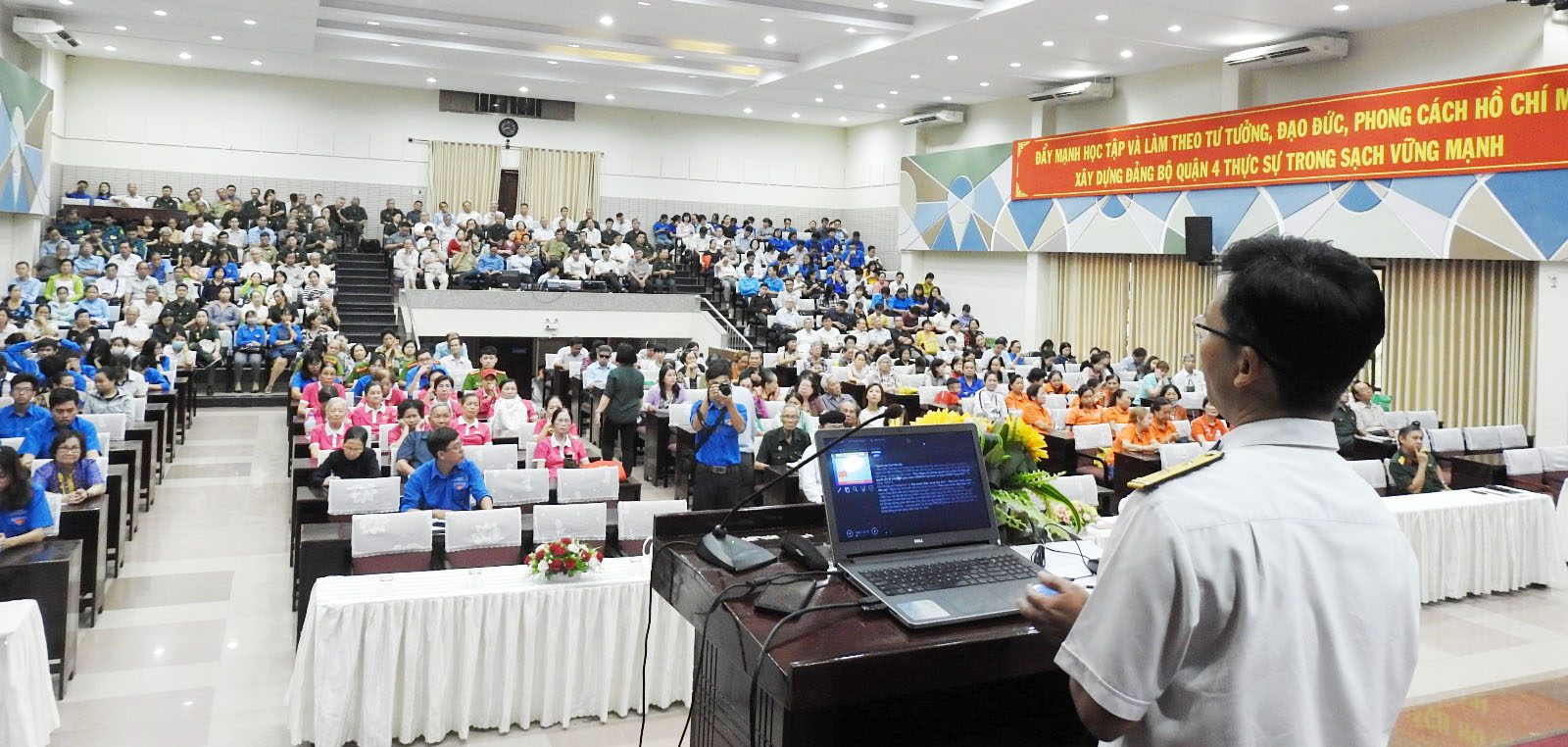 Báo cáo viên Lữ đoàn đã thông tin đến cán bộ, hội viên, đoàn viên quận 4 về tình hình biển, đảo hiện nay; quan điểm, chủ trương của Đảng; chính sách, pháp luật của Nhà nước ta về quản lý, bảo vệ chủ quyền biển, đảo; một số vấn đề về tình hình thế giới và khu vực trong thời gian qua.