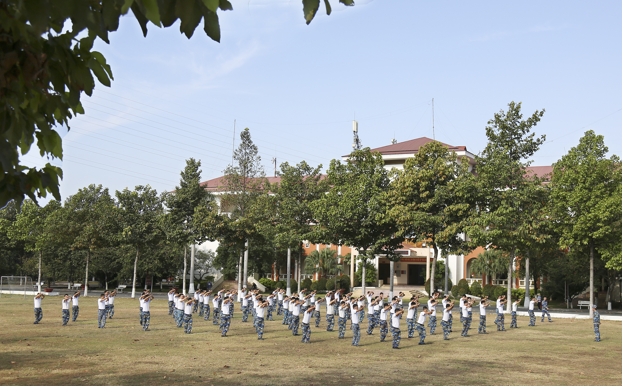 Đội hình luyện tập đồng diễn 35 thế liên quyền chuẩn bị cho lễ ra quân huấn luyện của Lữ đoàn 125 Hải quân