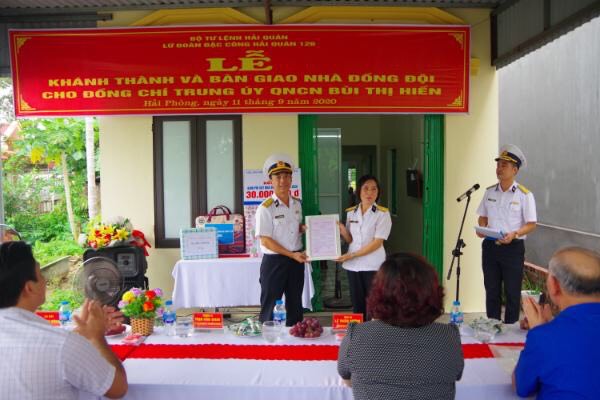 Ngày 11-9, Lữ đoàn Đặc công Hải quân 126 phối hợp với Hội Liên hiệp phụ nữ thành phố Hà Nội, chính quyền địa phương tổ chức khánh thành và ban giao nhà đồng đội cho gia đình Trung úy QNCN Bùi Thị Hiền tại xã Hoa Động, huyện Thủy Nguyên, thành phố Hải Phòng.