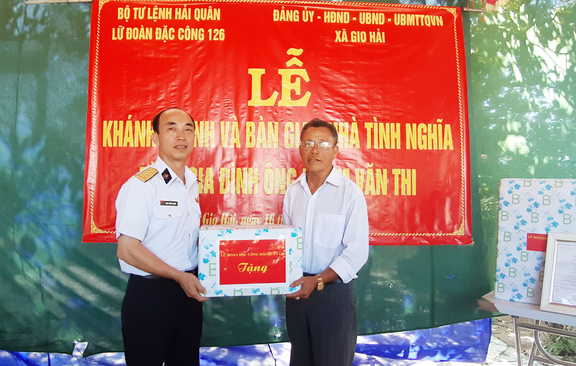 Tại buổi lễ, Lữ đoàn Đặc công Hải quân 126, chính quyền, đoàn thể địa phương đã tặng gia đình ông Thi nhiều phần quà thiết thực.
