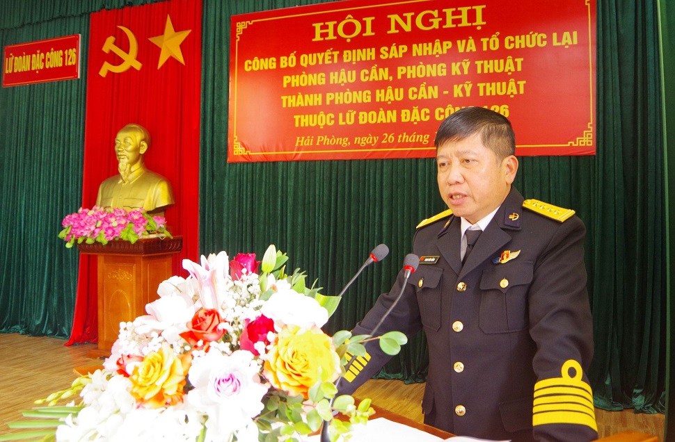 Chiều 26/12, tại Hải Phòng, Đảng ủy, chỉ huy Lữ đoàn Đặc công Hải quân 126 tổ chức Hội nghị công bố quyết định sáp nhập và tổ chức lại Phòng Hậu cần, Phòng Kỹ thuật thành Phòng Hậu cần – Kỹ thuật.