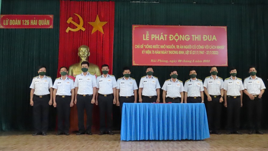 Ngày 9/5, tại Hải Phòng, Lữ đoàn Đặc công Hải quân 126 tổ chức Lễ phát động thi đua với chủ đề “ Uống nước nhớ nguồn, tri ân người có công với cách mạng”, hướng tới kỷ niệm 75 năm Ngày thương binh liệt sĩ (27/7/1947 – 27/7/2022).
