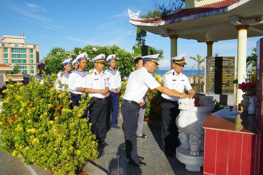 Trước đó, đoàn công tác Lữ đoàn đã tổ chức dâng hương nghĩa trang liệt sĩ huyện Lý Sơn; đài tưởng niệm Đội hùng binh Hoàng Sa kiêm quản Bắc Hải; tham quan Nhà trưng bày của huyện Lý Sơn.
