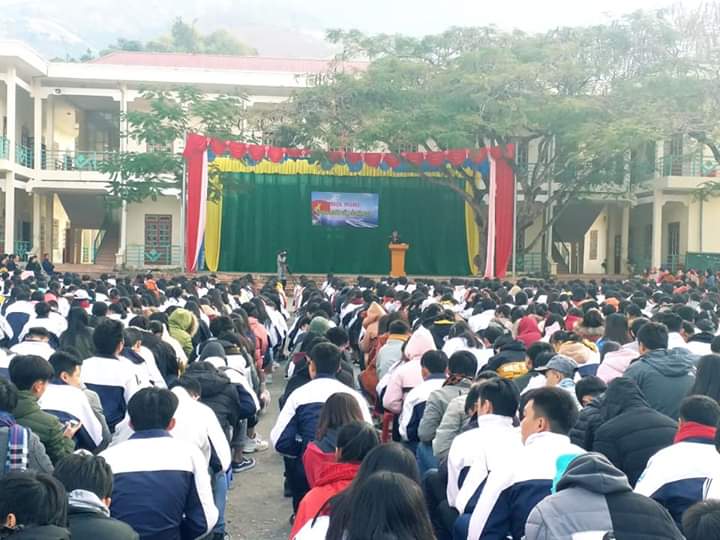 Quang cảnh buổi thông tin về biển, đảo tại Trường THPT Sông Mã
