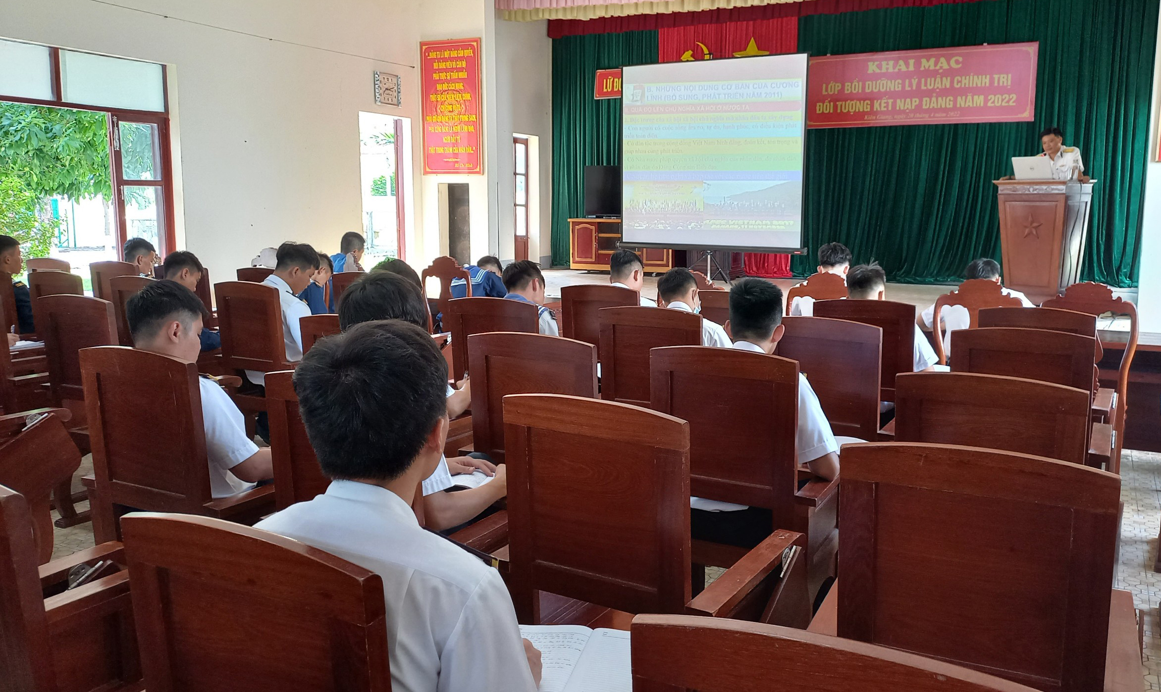 Sáng 20/4, tại TP. Phú Quốc, tỉnh Kiên Giang, Lữ đoàn 127, Vùng 5 Hải quân tổ chức khai mạc lớp bồi dưỡng lý luận chính trị cho đối tượng kết nạp Đảng năm 2022.
