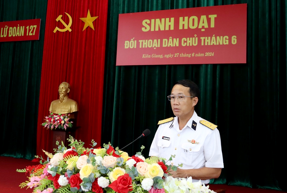 Chiều 27/6, tại TP. Phú Quốc, tỉnh Kiên Giang, Lữ đoàn 127, Vùng 5 Hải quân tổ chức đối thoại dân chủ tháng 6 năm 2024. Dự đối thoại có Thượng tá Nguyễn Lương Khuyên, Chính ủy Lữ đoàn cùng các đồng chí trong Đảng ủy, chỉ huy Lữ đoàn.