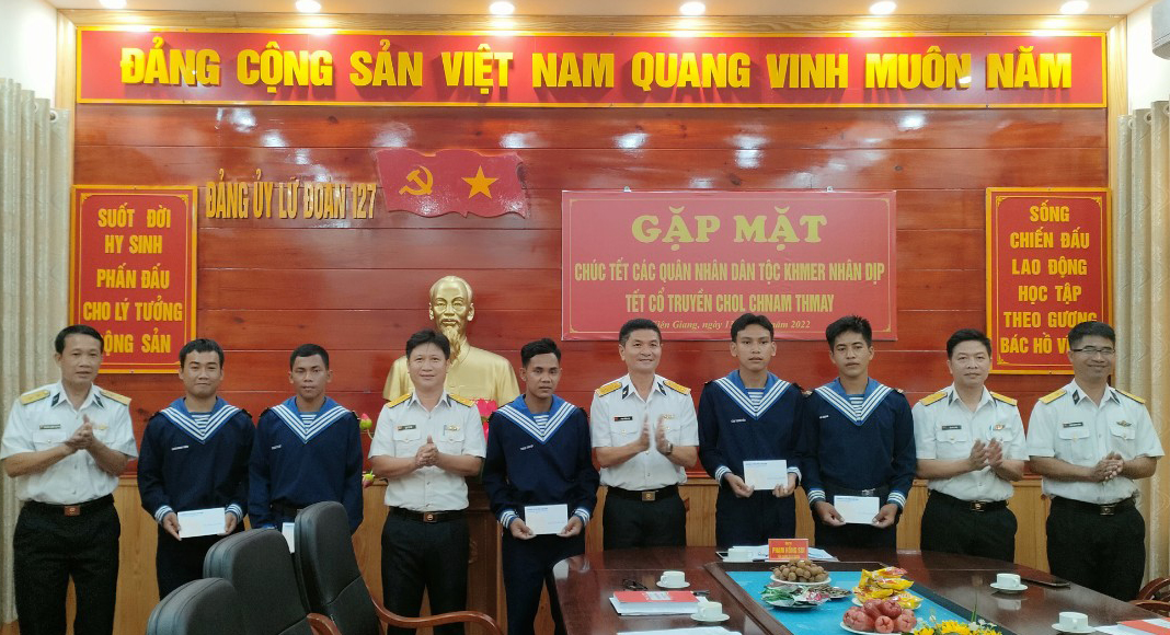 Chiều 13/4, tại TP. Phú Quốc, tỉnh Kiên Giang, Lữ đoàn 127, Vùng 5 Hải quân tổ chức gặp mặt chúc tết các quân nhân dân tộc Khmer nhân dịp Tết Chol Chnam Thmay. Đại tá Phạm Hồng Soi, Phó Chính ủy Lữ đoàn chủ trì.
