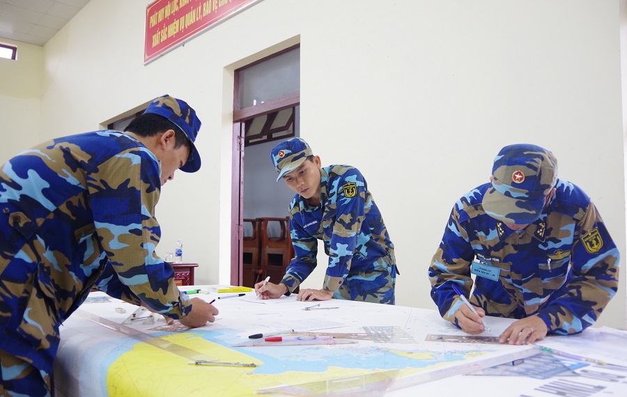 Sĩ quan Lữ đoàn 127 tác nghiệp trên bản đồ