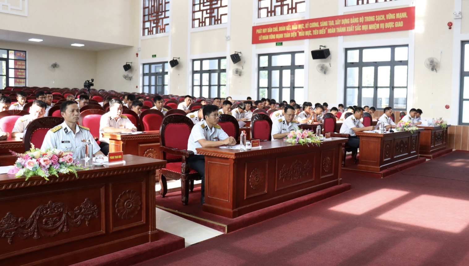 Hội nghị nhằm trao đổi kinh nghiệm, phương pháp tổ chức, chỉ huy điều hành, quản lý bộ đội; phong cách, tác phong công tác; đánh giá việc thực hiện chức trách, nhiệm vụ được giao; công tác tổ chức thực hiện nhiệm vụ quân sự, quốc phòng 6 tháng đầu năm của đội ngũ cán bộ tàu.