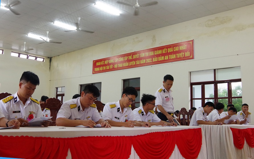 Ngay sau khai mạc, cán bộ, chiến sĩ các tàu thực hiện phần thi kiểm tra nhận thức chính trị