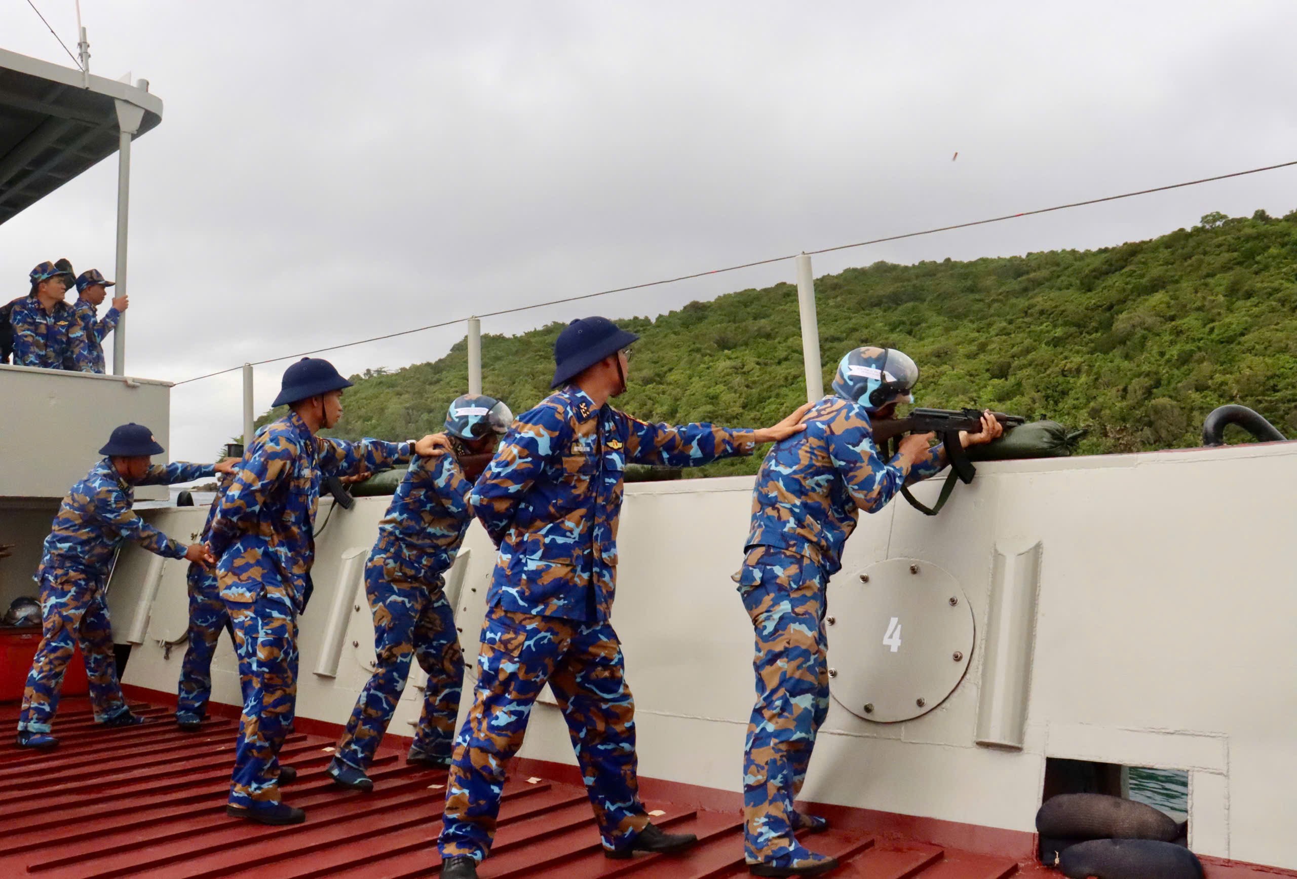 Đợt kiểm tra nhằm đánh giá trình độ thao tác, sử dụng vũ khí bộ binh trên tàu bắn mục tiêu mặt nước của cán bộ, chiến sĩ.