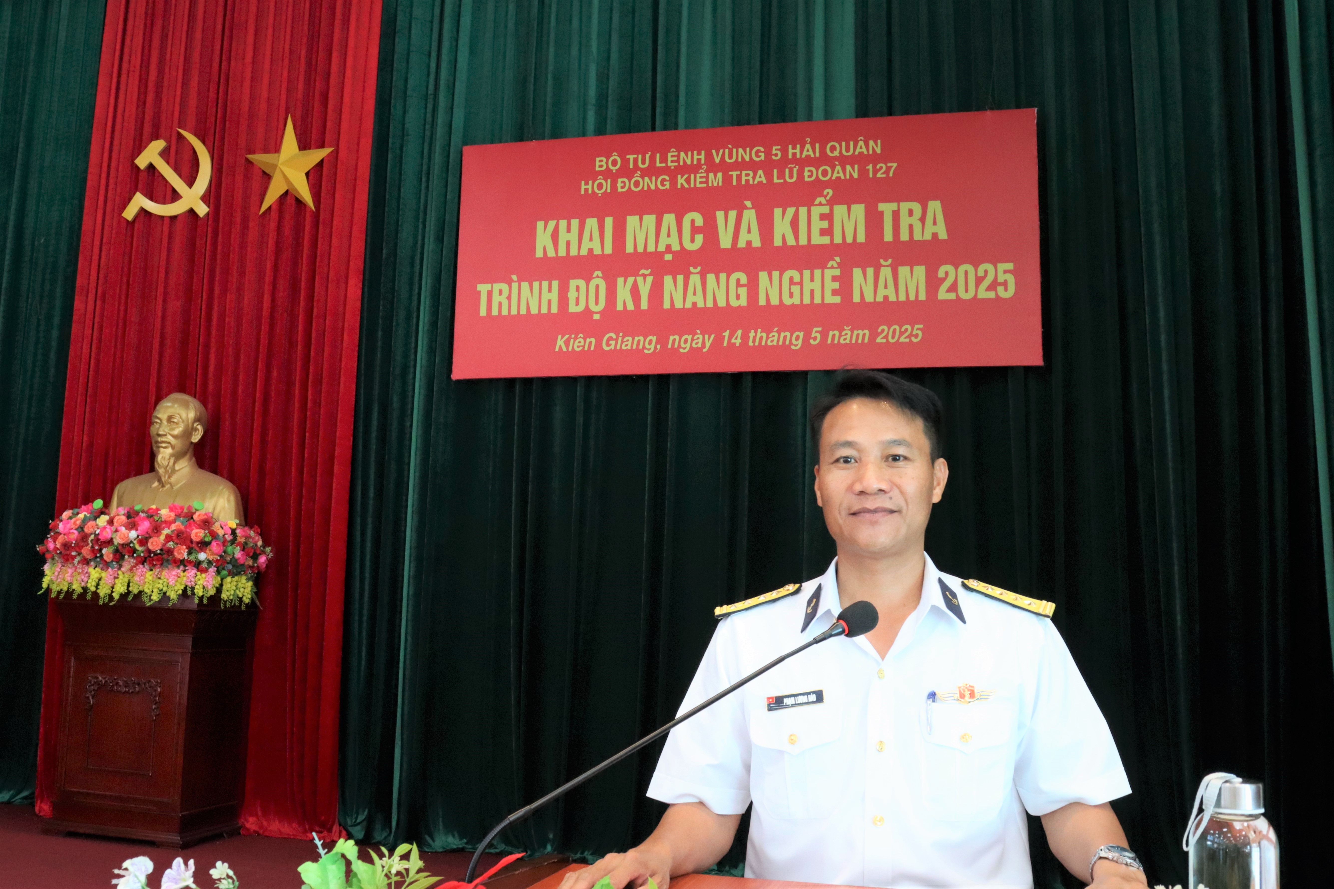 Ngày 14/5, tại thành phố Phú Quốc, tỉnh Kiên Giang, Lữ đoàn 127, Vùng 5 Hải quân tổ chức kiểm tra trình độ kỹ năng nghề năm 2025. Dự và chỉ đạo có Đại tá Phạm Lương Hào, Lữ đoàn trưởng.