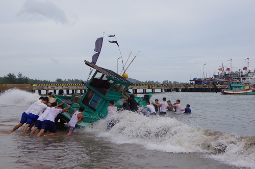 Sau gần 1 giờ tích cực cứu kéo, đến 16 giờ 40 cùng ngày, cán bộ, chiến sĩ Lữ đoàn 127, Vùng 5 Hải quân đã kéo được tàu cá ra khỏi nơi mắc cạn.