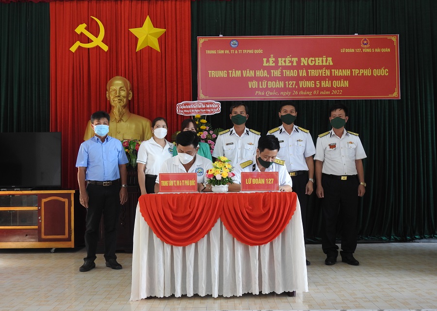 Chiều 26/3, tại TP. Phú Quốc, tỉnh Kiên Giang, Lữ đoàn 127, Vùng 5 Hải quân tổ chức Lễ kết nghĩa với Trung tâm Văn hóa, Thể thao và Truyền hình TP. Phú Quốc.