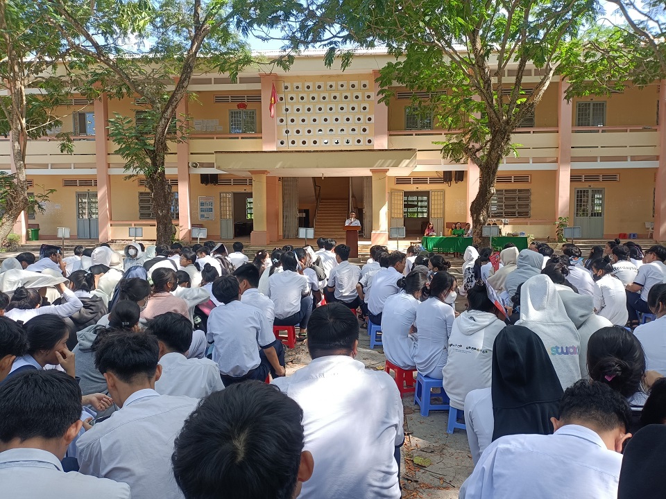Hơn 300 học sinh khối 12 đã được báo cáo viên của Lữ đoàn 127 thông tin về vị trí, vai trò, tầm quan trọng của của biển, đảo đối với sự nghiệp xây dựng và bảo vệ Tổ quốc; tình hình thực tế trên các vùng biển nước ta hiện nay; những chiến công tiêu biểu của Hải quân Nhân dân Việt Nam trong sự nghiệp bảo vệ chủ quyền biển, đảo; chặng đường xây dựng, chiến đấu, trưởng thành và phát triển của Vùng 5 Hải quân; khái quát về Học viện Hải quân, những điều cần biết để trở thành học viên Học viện Hải quân.